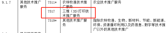 相关服务业领域的其他技术推广服务包含三维(3D)打印技术推广服务