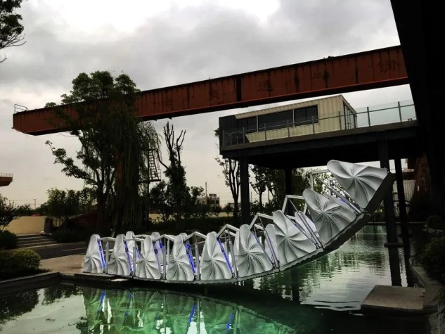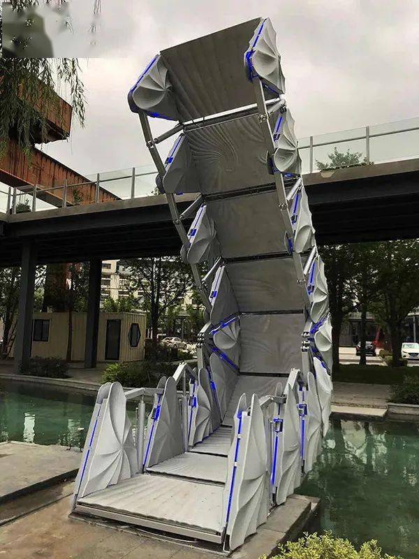 7月2日,中国首座运用3D打印技术制造的可伸缩景观人行桥亮相上海。该项目位于上海张庙街道辖区北部、沿蕰藻浜岸线的交运老码头——一号创新带交运智慧湾科创园,3D打印的景观伸缩桥作为连接沿河步行道与高线廊道,是跨越园内湖的必经之路。
