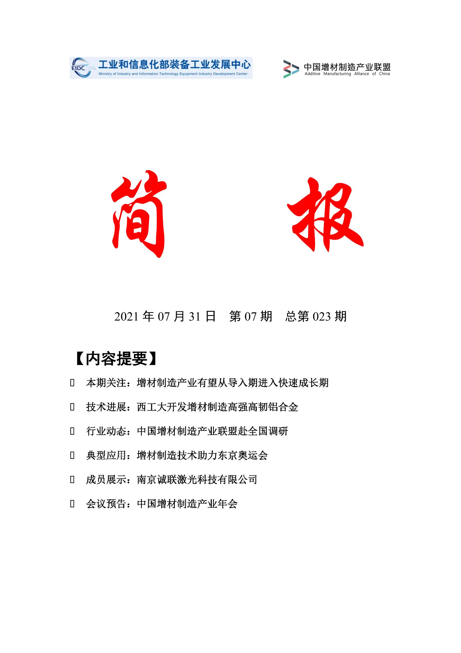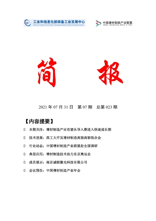 《增材制造产业发展简报》2021年第07期(总第023期)