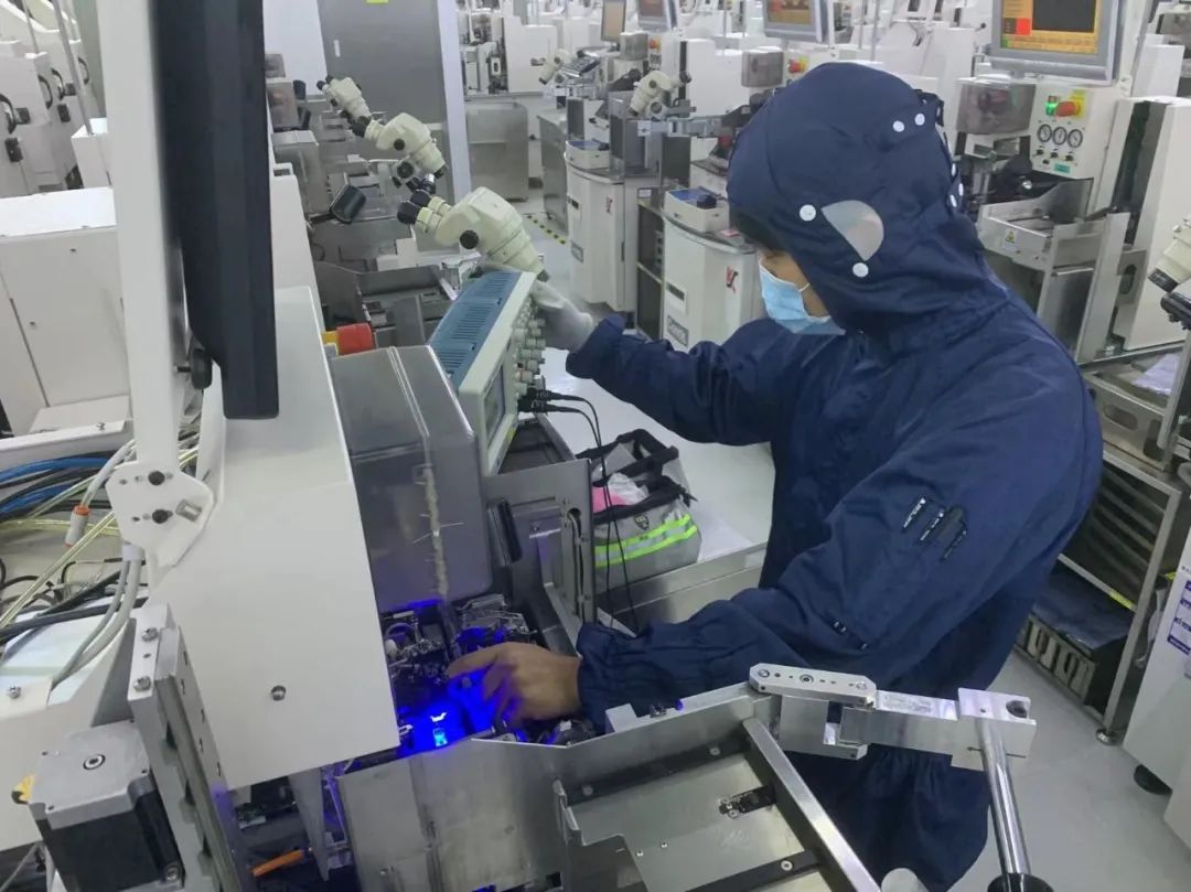 一家晶片生产企业车间员工正在操作电子仪器(总台记者陈鹏 摄)