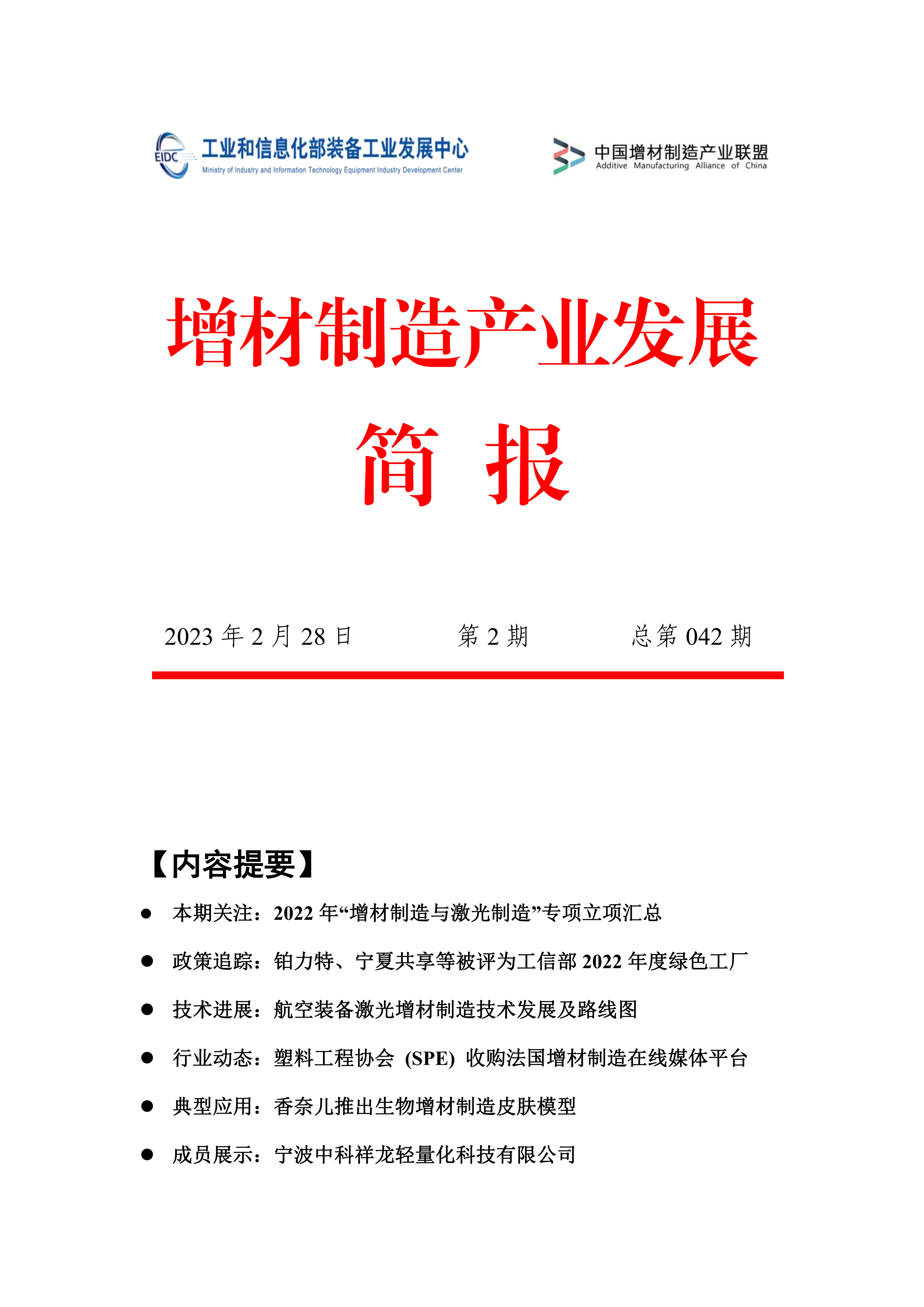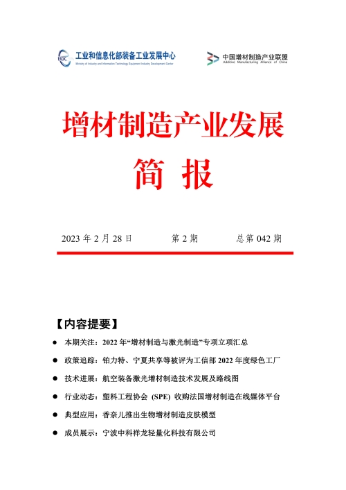 以下是《增材制造产业发展简报》2023年第02期(总第042期)