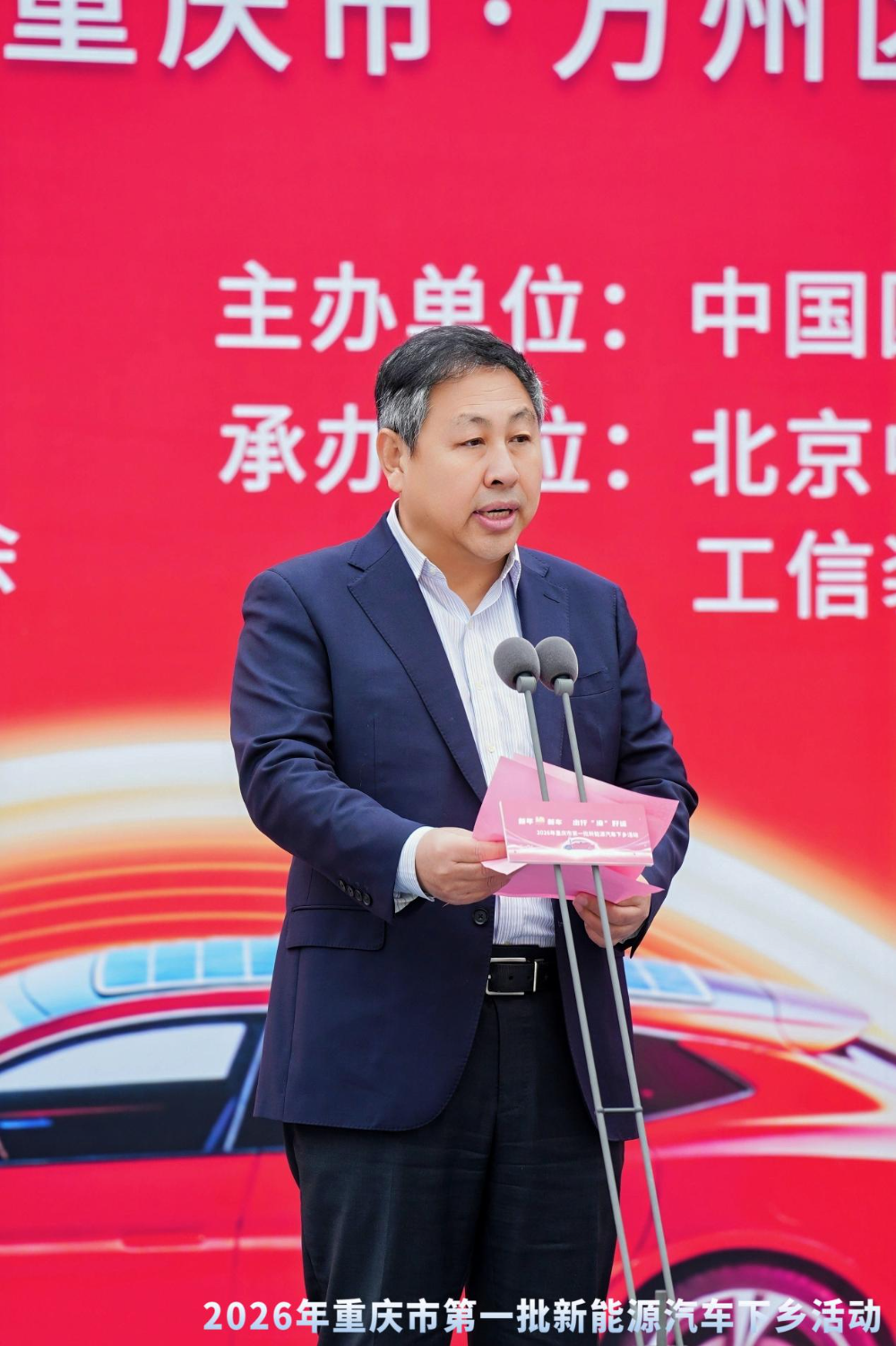 作为2026年新能源汽车下乡的启动首站,万州正深度融入成渝地区双城经济圈建设,着力提升城市副中心能级,全力打造全国高质量发展示范城区。万州区人民政府副区长刘小泉表示,新能源汽车推广是服务“双碳”战略与乡村振兴的关键抓手。万州作为全市首批全面电动化试点,已建成覆盖全域的“快充半小时、超充一秒一公里”补能体系,形成“万州样板”。他指出,本次活动在万州启动,是推动乡村振兴与消费升级的重要举措。万州创新“汽车+文旅”模式,结合三峡文化、平湖资源,推动“以车促游、以游带消”。本次活动将成为展示万州形象、释放消费活力的重要窗口,有助于激发岁末年初市场。他承诺将全力保障活动有序开展,并邀请各界深化合作,共同探索产业融合新路径,为重庆建设先进制造业中心注入新动能。